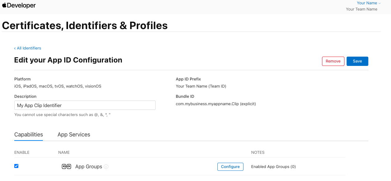 You will need the App Identifier and App Clip Identifier for the next section