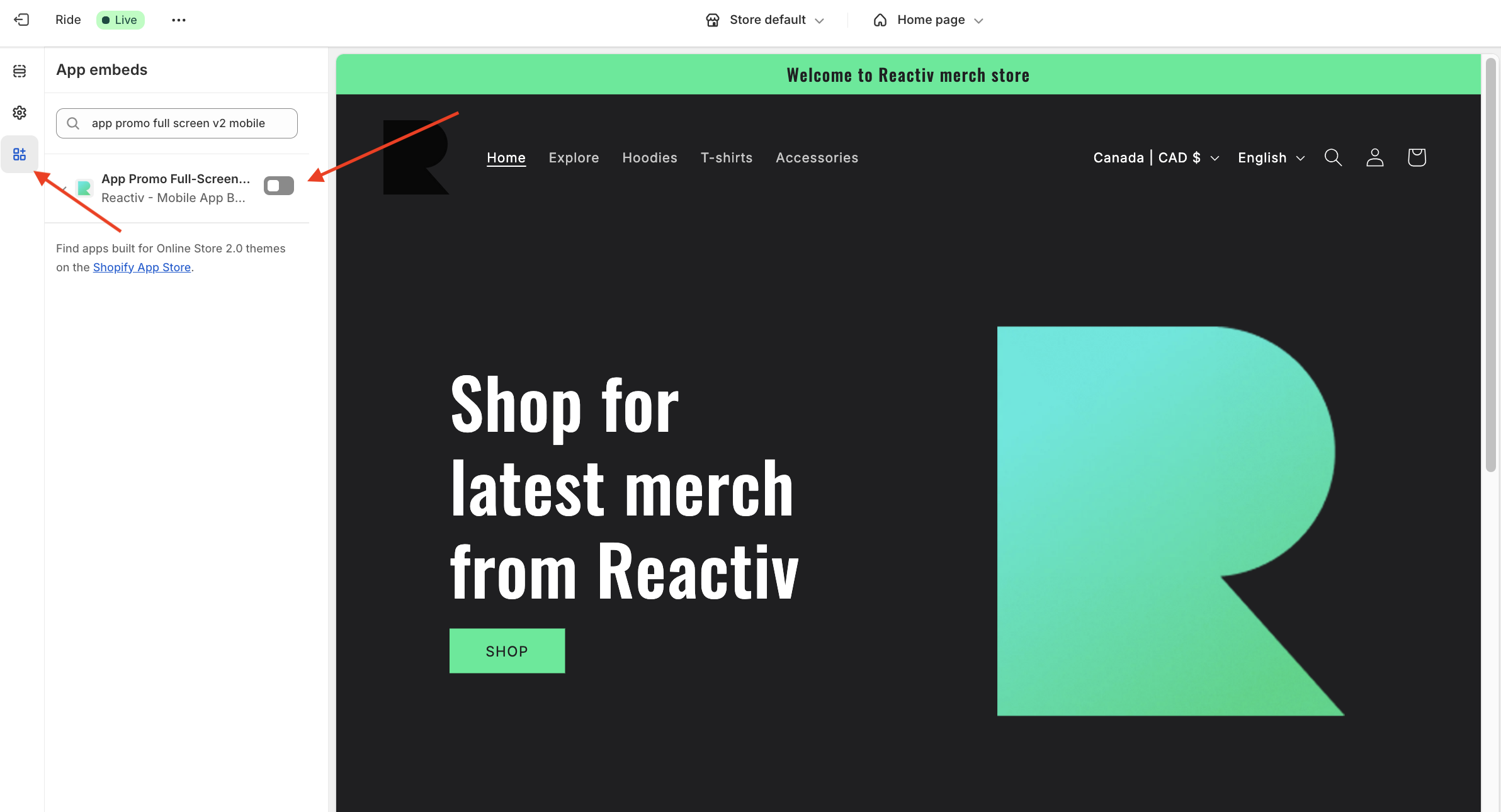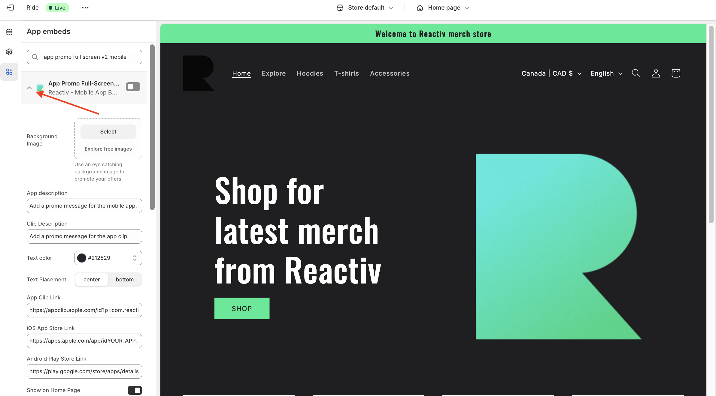 Add Reactiv's Header Banner to your Shopify Store