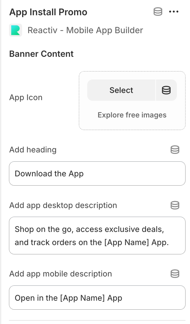 App mobile description – A shorter message for mobile visitors (e.g., “Open in the Reactiv App”).