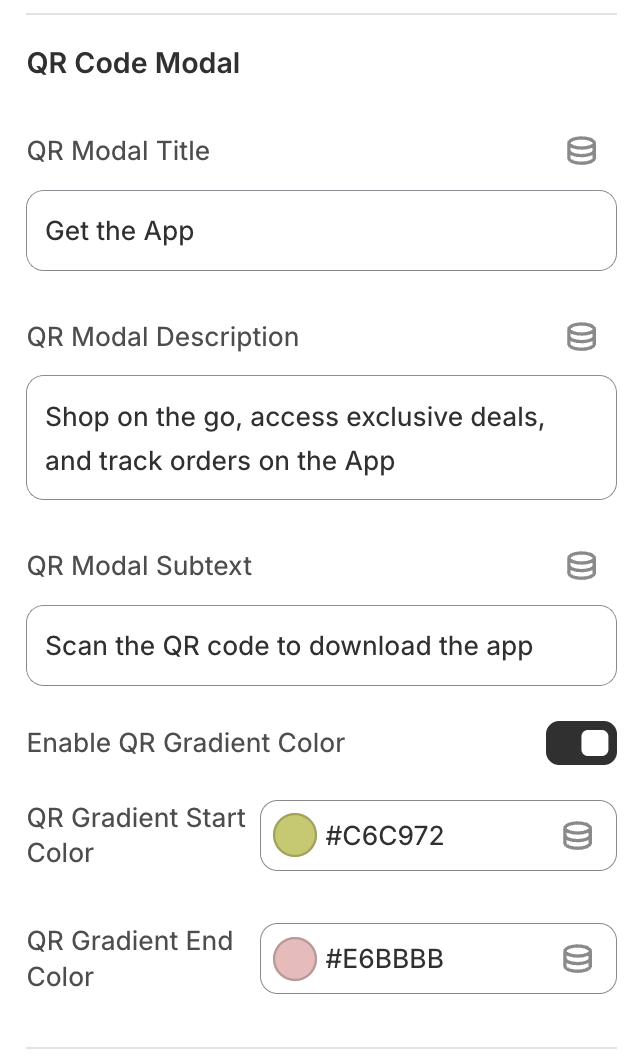 Enable and style a popup that displays a scannable QR code for easy app download.