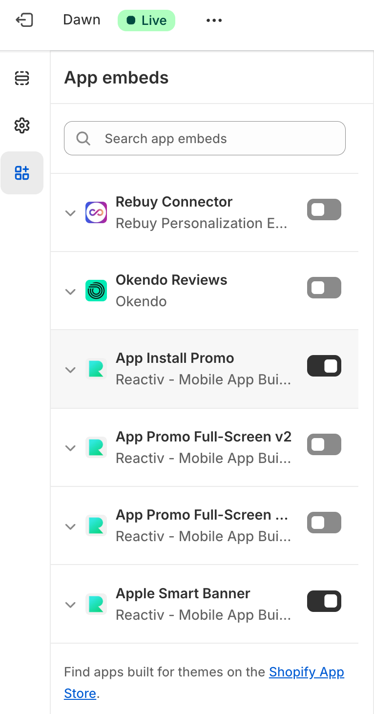 Add the Reactiv App Install Promo Banner to Your Shopify Store | Reactiv Support Center
