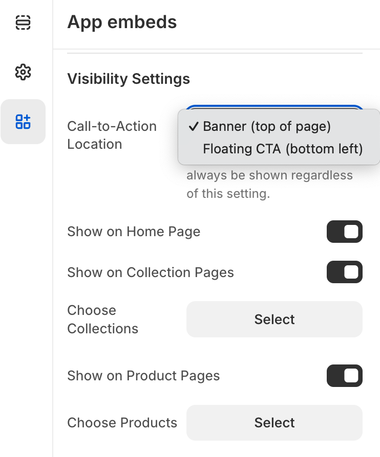 Show on Collection Pages – Enable this option and click Choose Collections to target specific ones.