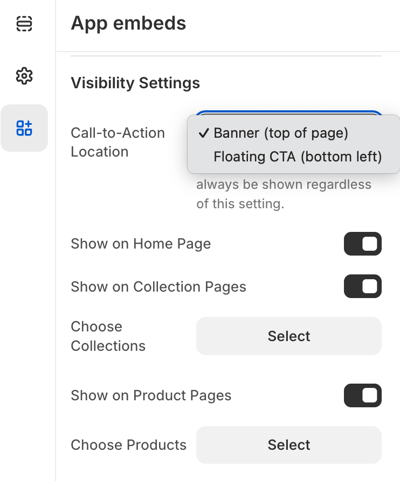 In the theme editor, navigate to the App Embeds section, on the left hand side.
