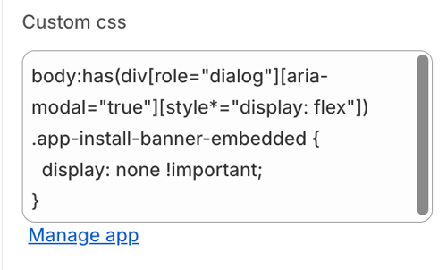 This section allows you to include additional CSS styling to dictate behaviour of your banner. This is especially useful if you have multiple banners and pop-ups on your store.