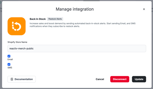 Make sure Back in Stock Org is selected as the active provider in App Settings.