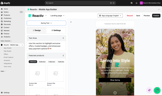 - Open the screen you want to update in your Reactiv dashboard.