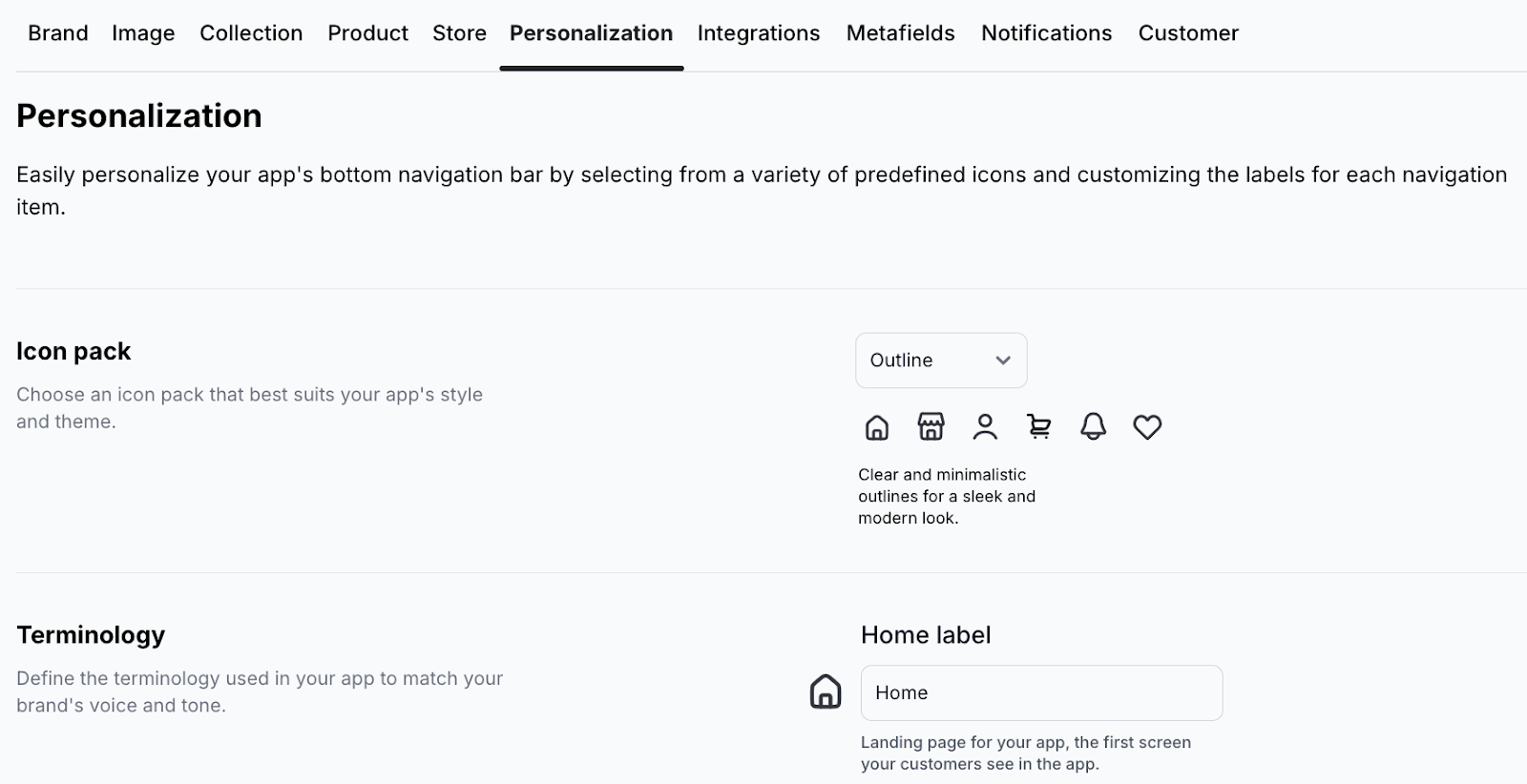 Control how your app looks and feels by updating icons, tab labels, and appearance.