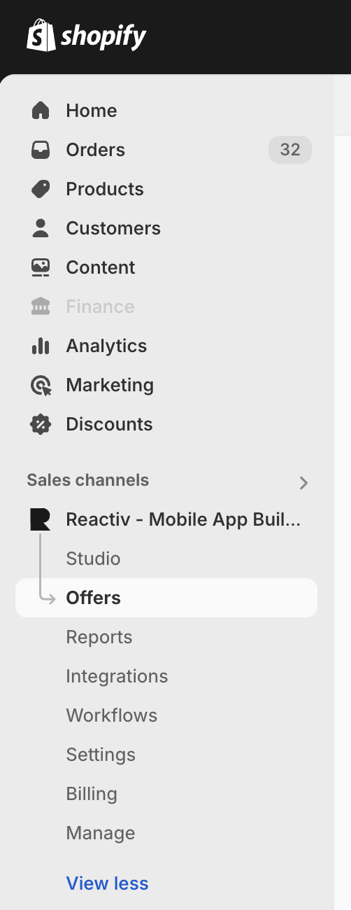 Reactiv Dashboard offers a powerful feature that allows you to configure special discount codes directly in your Shopify store. These discount codes can be provided to shoppers in your mobile app, enabling you to create unique shopping experiences and incentivize certain behaviors, such as account creation. The offers you configure will automatically sync with Shopify and appear in the cart screen for eligible shoppers. To enhance security, the discount codes are obfuscated programmatically, reducing the likelihood of unauthorized sharing.