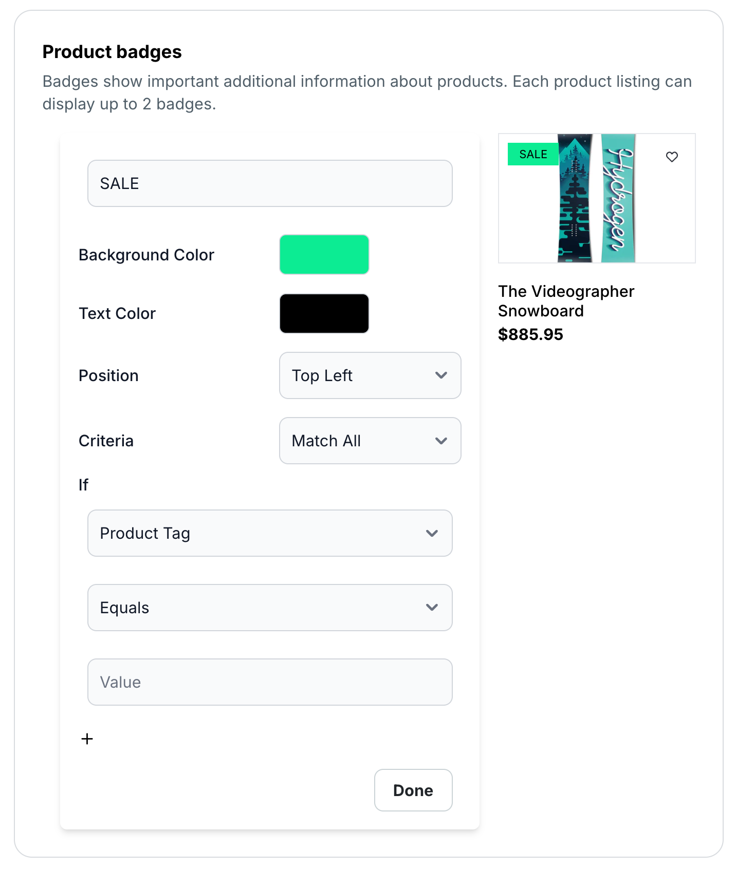 Highlight key product attributes with Product Badges (maximum of 2 per product).