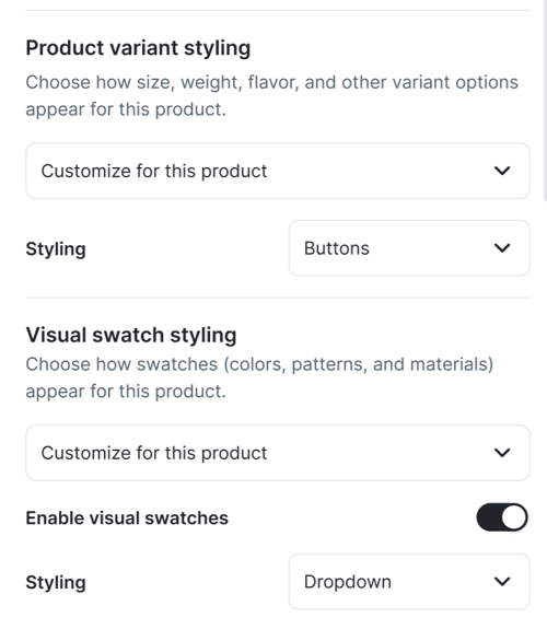 Choose between Buttons or Dropdowns for how all product variants (like size or weight) are displayed. -
