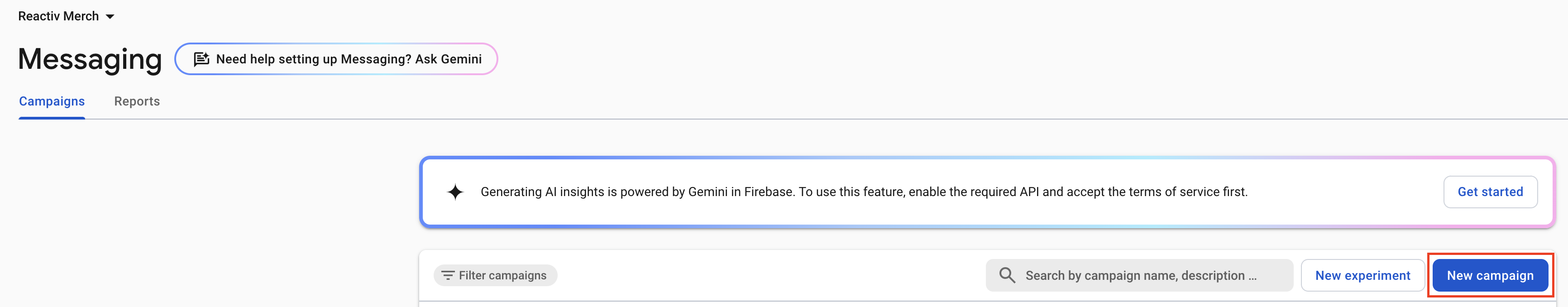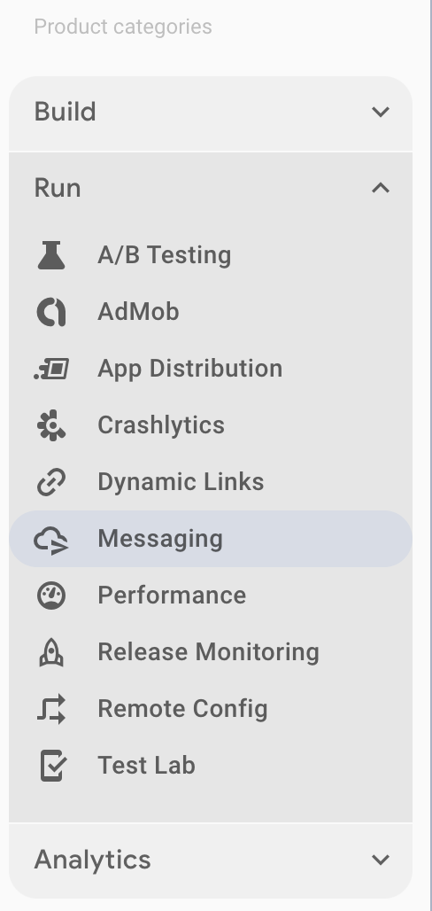 Go to Run > Messaging in Firebase Console.