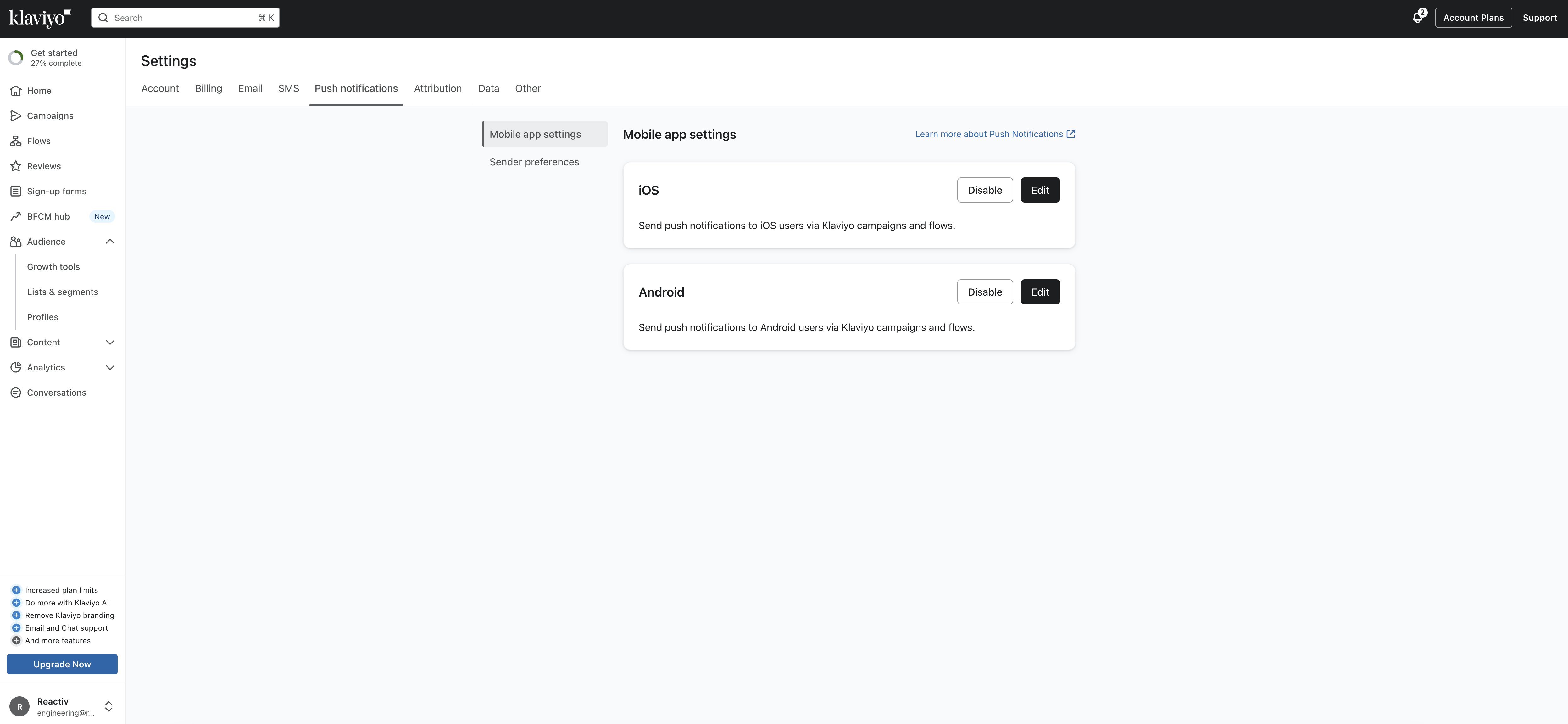 3. Enable Push Notifications: Ensure that iOS and Android Push Notifications are enabled