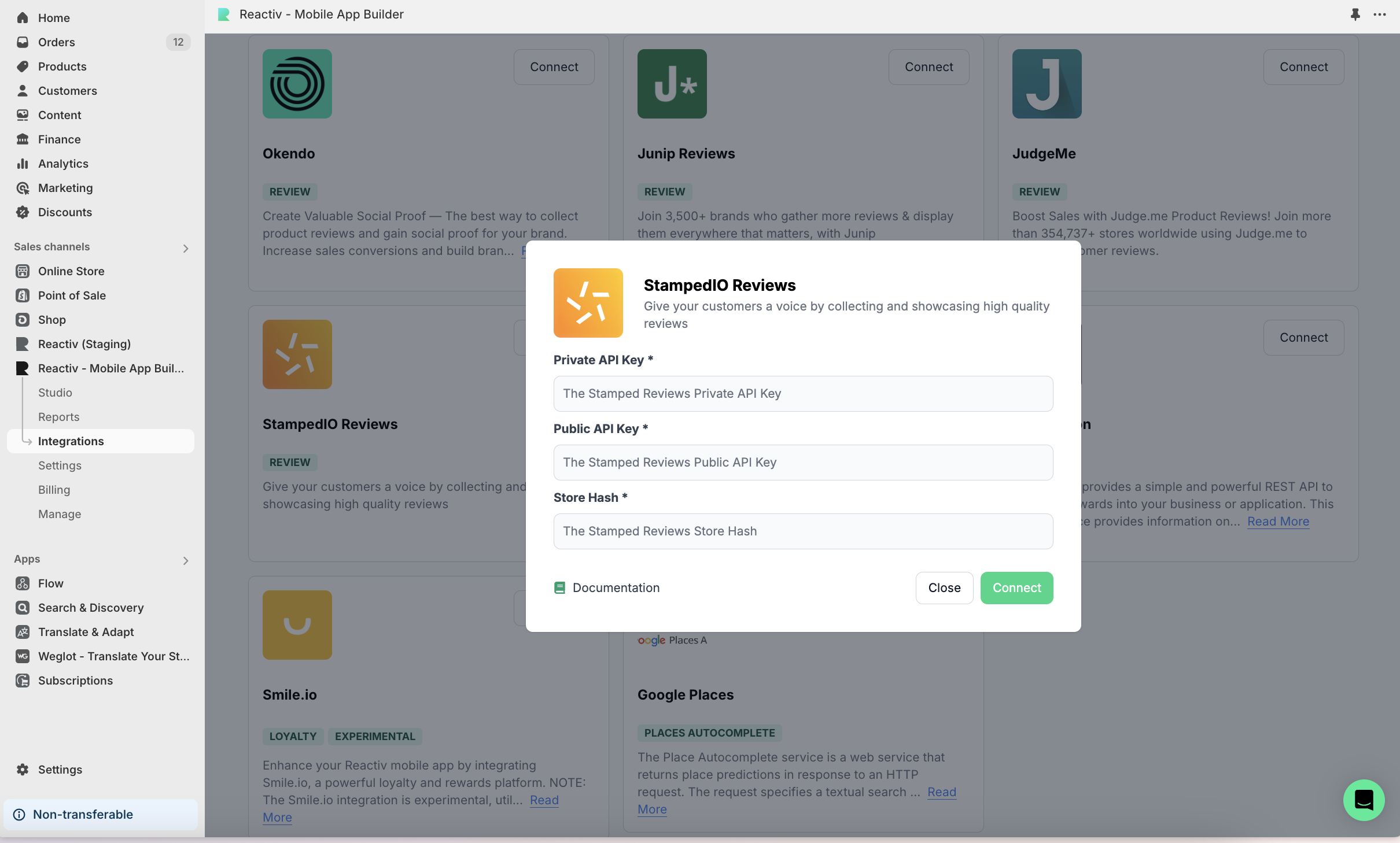 Stamped Reviews is a powerful tool for collecting and showcasing high-quality customer reviews. Integrating Stamped Reviews with your Reactiv mobile app allows you to display reviews directly in your app, enhancing customer trust and boosting conversions. Follow the steps below to set up the integration.