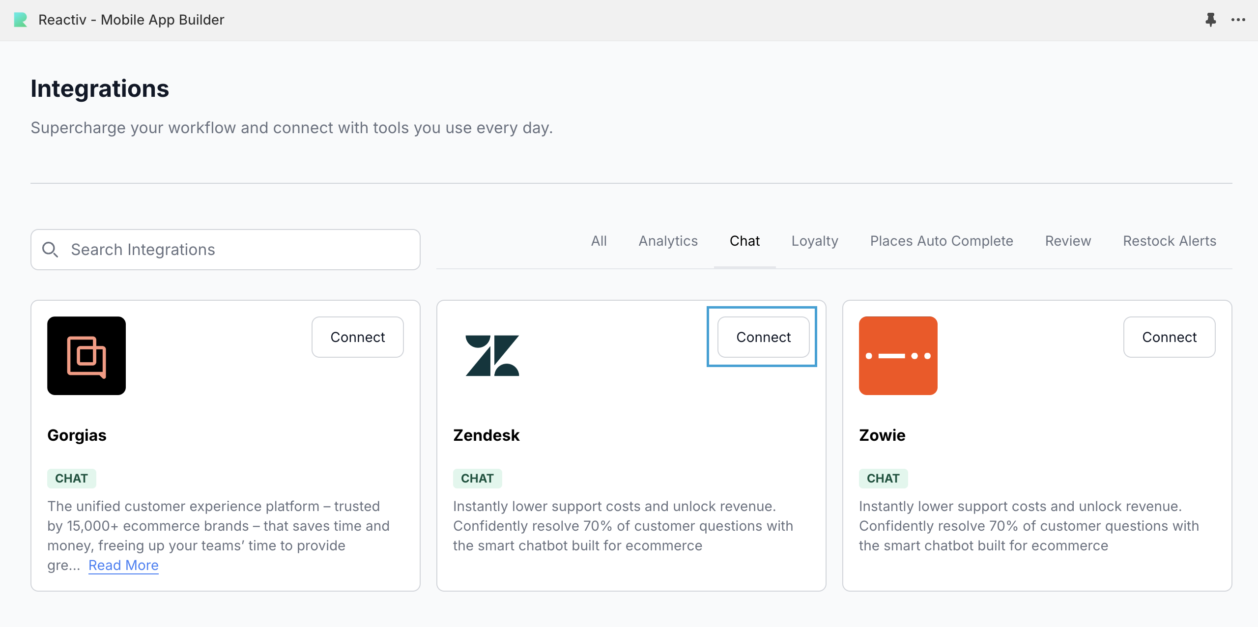 This guide will help you integrate Zendesk for chat with your Reactiv Mobile App. Zendesk is an AI-powered platform for seamless support and engagement across every channel.