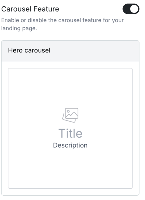 The Hero Carousel is always pinned to the top of the Landing Page and cannot be moved or duplicated. You can enable or disable this section from the page settings, but its position is fixed.
