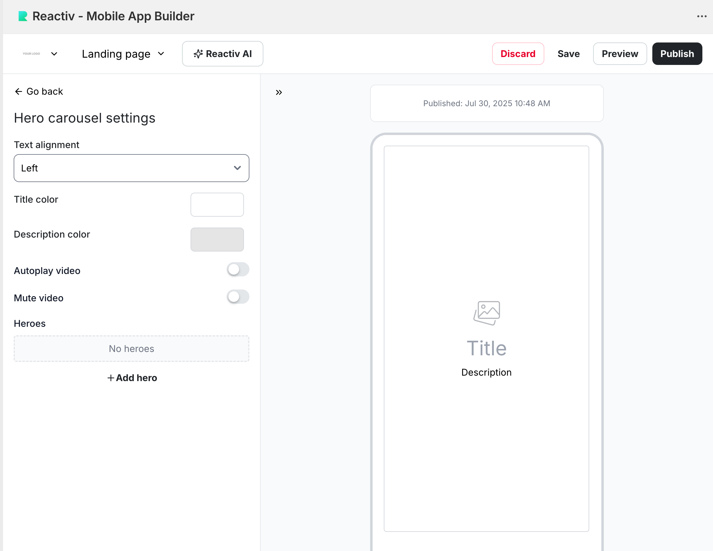 You can build and save multiple Landing Pages in Reactiv—each with its own layout, content, and deep link. This allows you to: