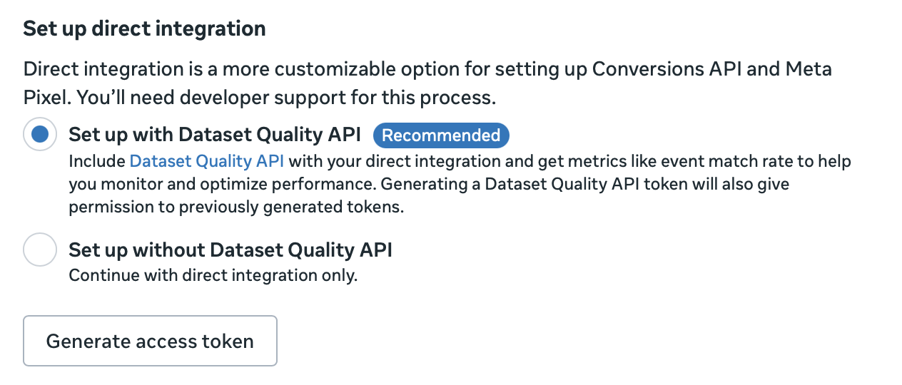 This guide provides step-by-step instructions for setting up a dataset and generating an access token in Meta Business Manager. This process is essential for integrating with the Facebook Conversion API.
