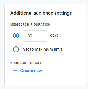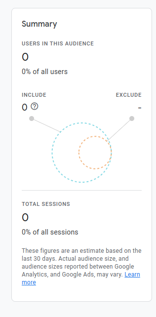 Optionally, set Audience Retention in the top-right to control how long users remain in the audience after meeting the criteria.