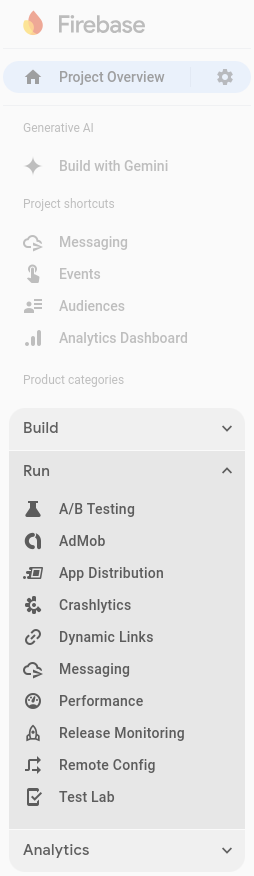 Log into your Firebase account and navigate to the Run section.