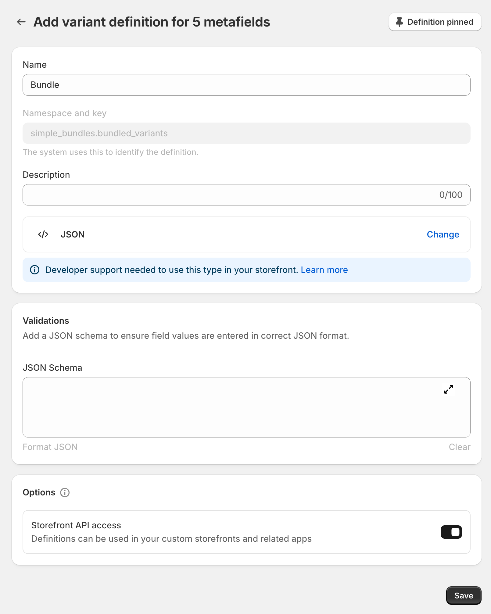 Now that you've added definitions to your bundle metafields, it's time to configure them.