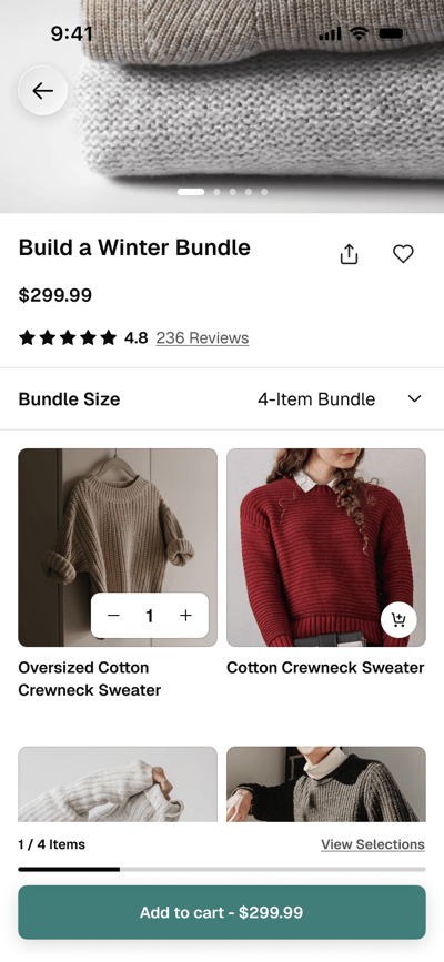 Shoppers can build and purchase bundles directly within the app using the FoxSell bundle builder experience.
