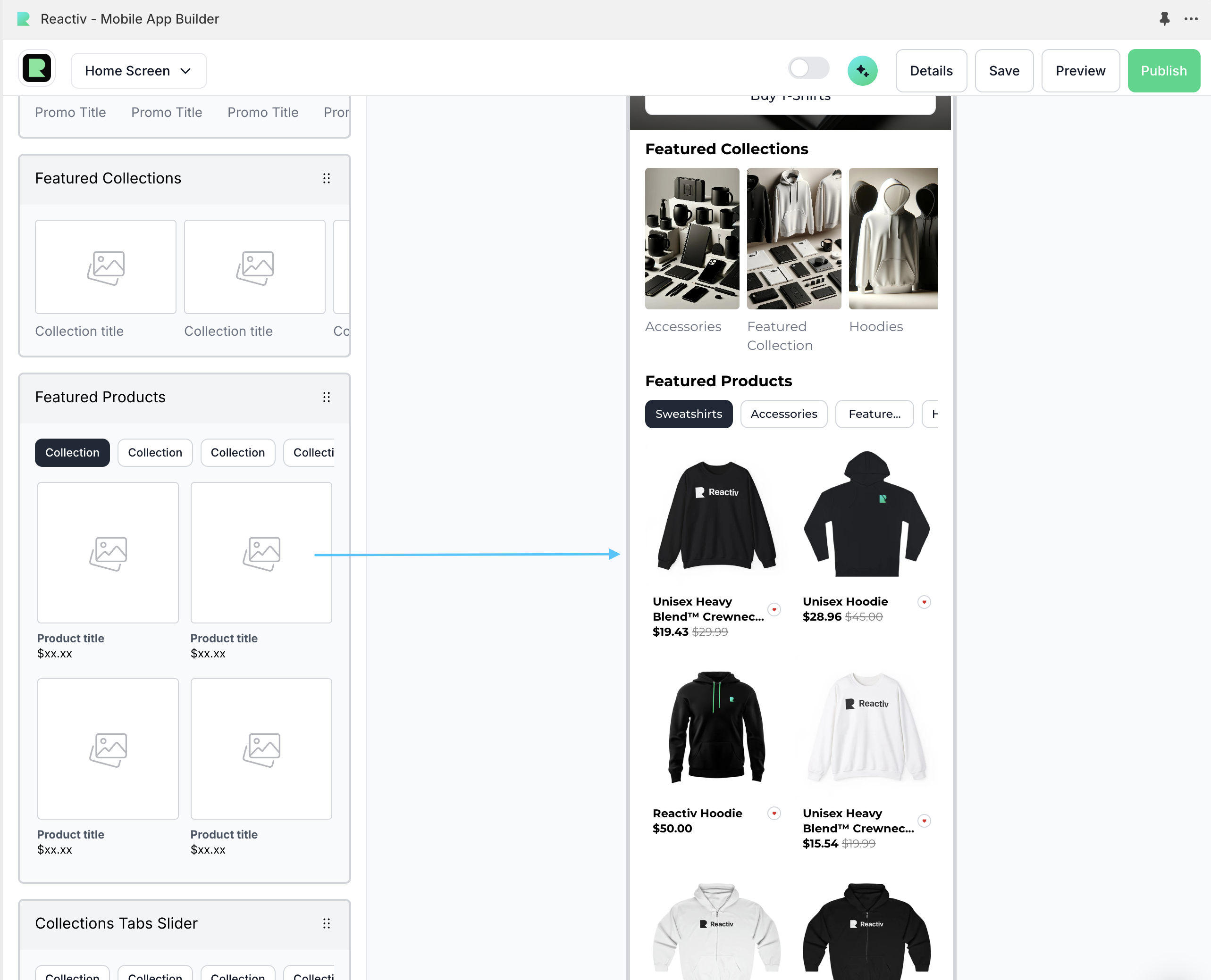Drag the "Featured Collections" section to the preview area.