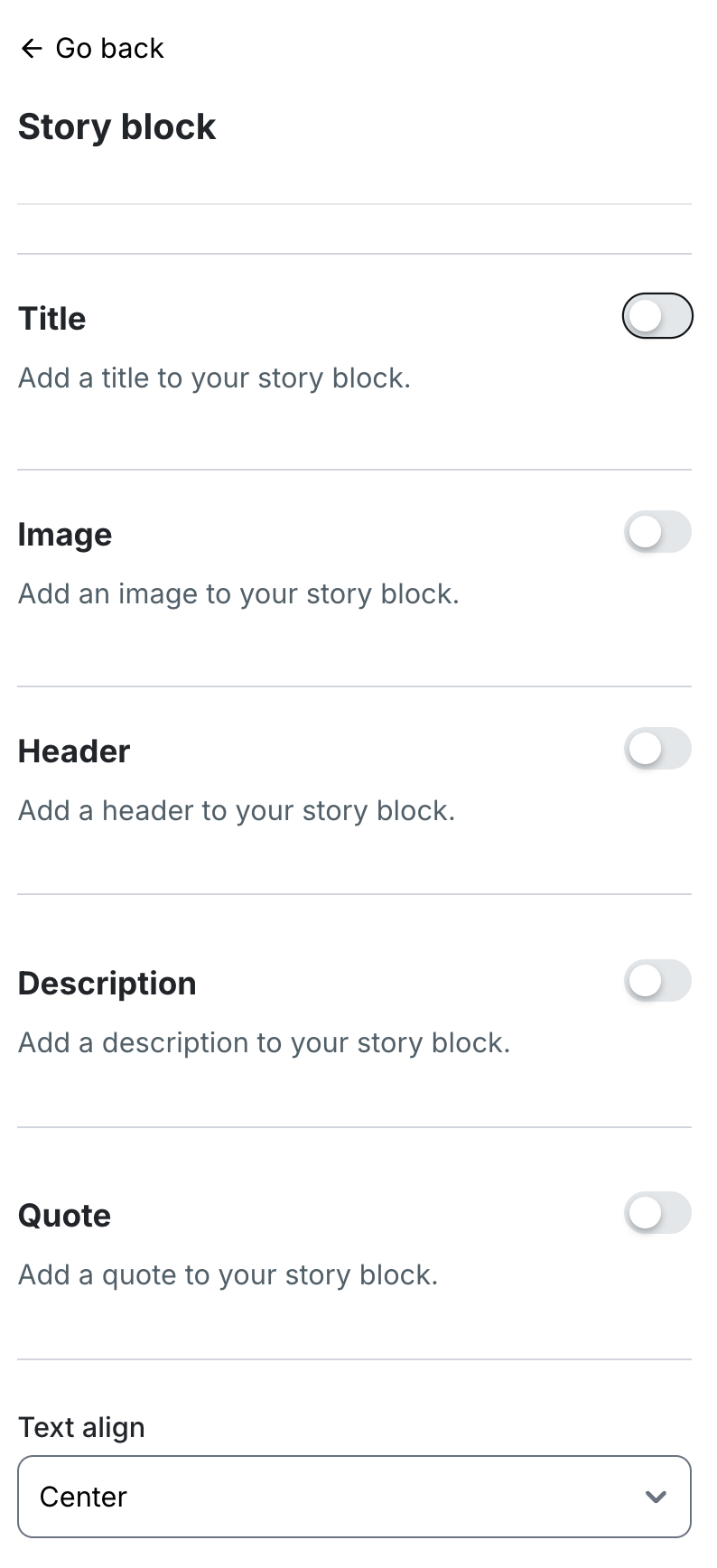 Use these sections to tell your brand’s story, promote a theme, or highlight a limited-time offer.
