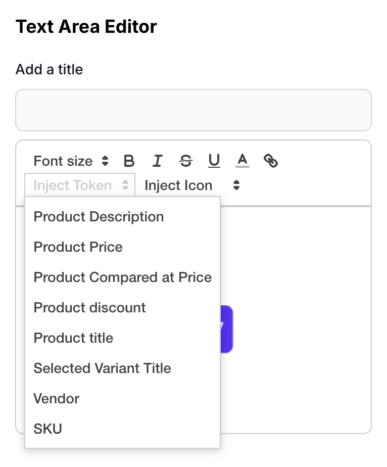 In the Text Area, you can add plain text, inject a variety of tokens or make use of the icons we have available for BNPL options.