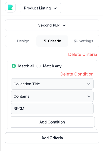 You will notice that on this additional screen, you now have a Criteria tab where you will be able to define when this template is used. In the below example, the criteria is that the Collection Title contains BFCM.
