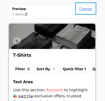 ⭐️ Reactiv Tip: To preview what a specific collection's PLP will look like, select the Change button within the page preview box and search for a specific collection.