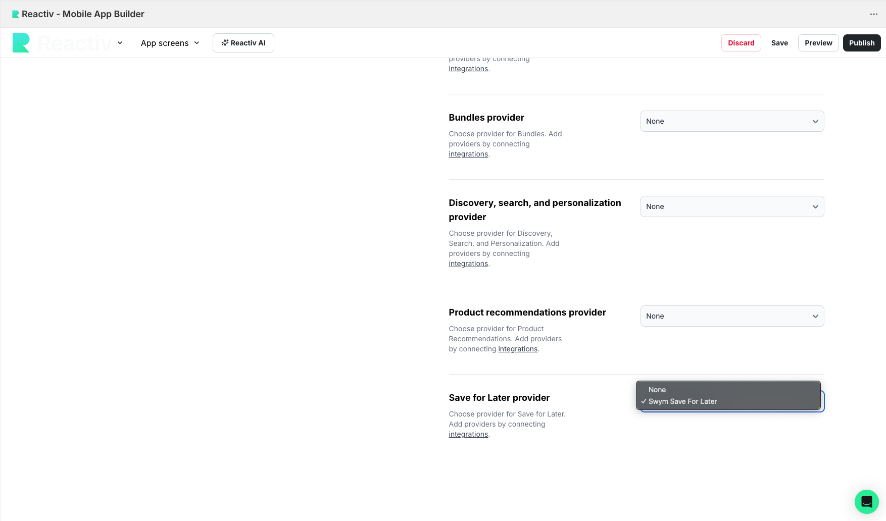 Step 2: Select Swym as Provider in App Settings