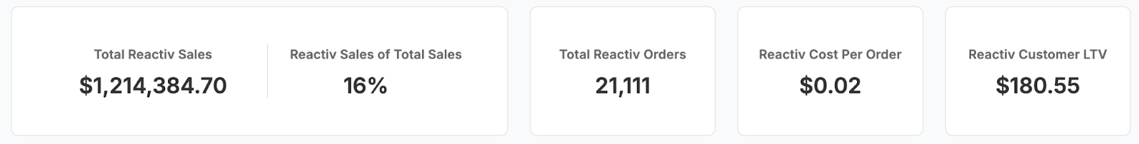 Reactiv Sales of Total Sales – The app’s contribution as a percentage of total store sales.
