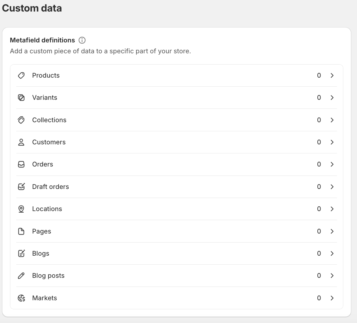 Switch to the Metafields Tab