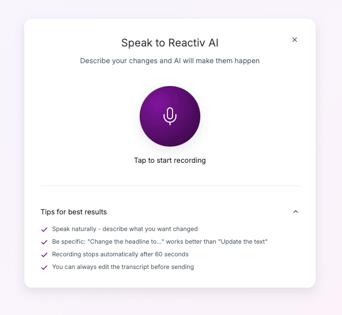 Prefer talking to typing? You can interact with the AI Studio Agent using voice for faster, hands-free workflows — perfect for when ideas move quicker than your keyboard.
